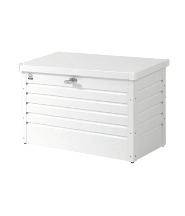 Eine hervorragende Verarbeitung mit dem feuerverzinkten und polyamideinbrennlackierten Stahlblech stellt sicher, dass die Freizeitbox 100 von Biohort lange haltbar ist. Der Markenhersteller Biohort gewährleistet eine Garantie von 20 Jahren auf das aus qualitativen Materialien gearbeitete Produkt. Ihre Biohort Freizeitbox 100 kann mithilfe einer Foto-Aufbauanleitung simpel zusammengebaut werden. Edelstahlschrauben und -scharniere sind korrosionsfrei und unterstreichen das wertige Aussehen Ihrer Gartenbox. Vier Füße, die am Boden der Truhe montiert werden, sorgen für den entsprechenden Abstand zum Untergrund und eine ansprechende Optik. Die großzügigen Innenmaße der Box ermöglichen viel Stauraum, (Raumvolumen 195 Liter) dennoch lässt sie sich platzsparend im geschützten Außenbereich, im Keller oder auf dem Dachboden aufstellen.