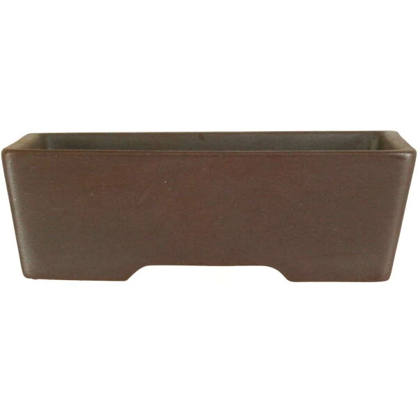 Bonsaischale (unglasiert, dunkelbraun, rechteckig) in den Abmessungen: 15cm Länge, 11cm Breite, 5cm Höhe. Sehr gute Qualität aus der berühmten Töpferstadt Yixing.