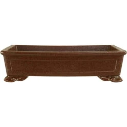 Bonsaischale (unglasiert, dunkelbraun, rechteckig) in den Abmessungen: 24.5cm Länge, 19.5cm Breite, 6cm Höhe. Sehr gute Qualität aus der berühmten Töpferstadt Yixing.