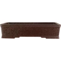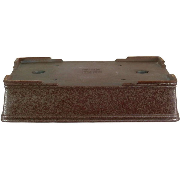 Bonsaischale (unglasiert, dunkelbraun, rechteckig) in den Abmessungen: 25.5cm Länge, 19cm Breite, 6cm Höhe. Sehr gute Qualität aus der berühmten Töpferstadt Yixing.