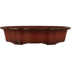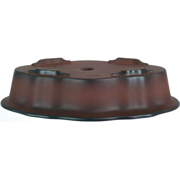 Bonsaischale (unglasiert, dunkelbraun, lotusfã¶rmig) in den Abmessungen: 25cm Länge, 16.5cm Breite, 6cm Höhe. Sehr gute Qualität aus der berühmten Töpferstadt Yixing.