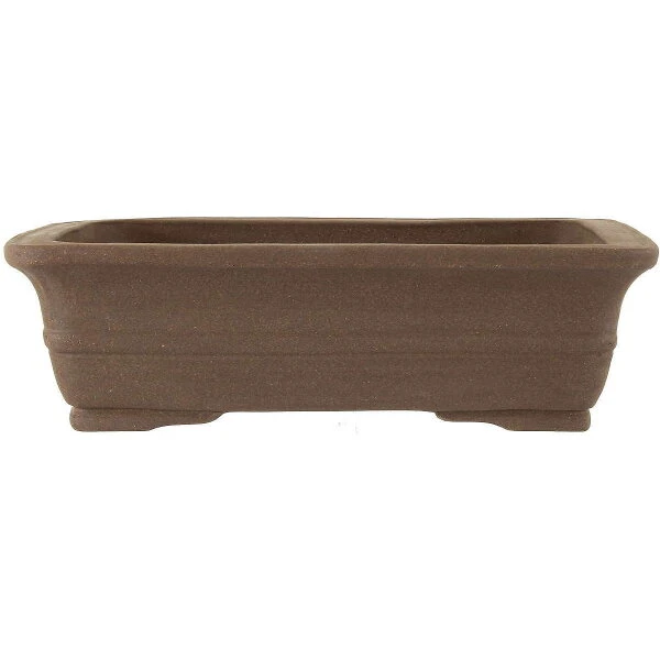 Bonsaischale (Unglasiert, Dunkelbraun, Rechteckig), handgemacht, in den Abmessungen: 27cm Länge, 20cm Breite, 8cm Höhe.