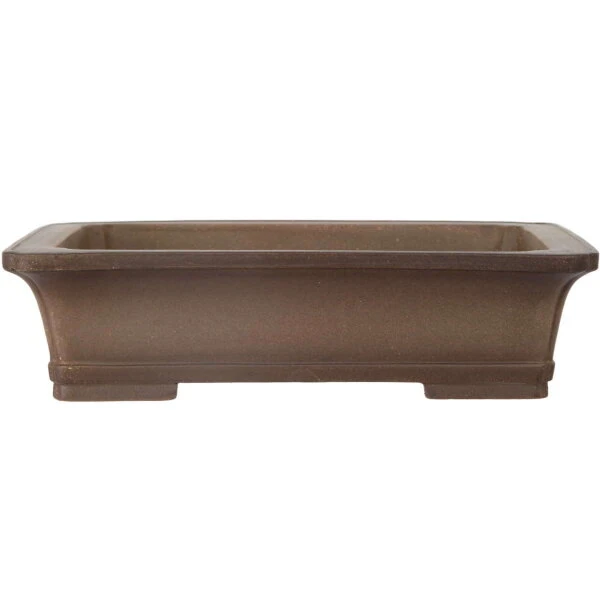 Bonsaischale (unglasiert, antik-grau, rechteckig), handgemacht, in den Abmessungen: 30.5cm Länge, 24.5cm Breite, 8cm Höhe.