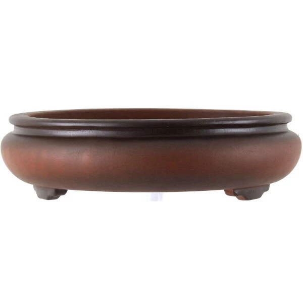 Bonsaischale (Unglasiert, Antik-Braun, Rund), handgemacht, in den Abmessungen: 30.5cm Länge, 30.5cm Breite, 8.5cm Höhe.