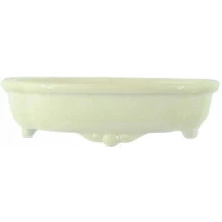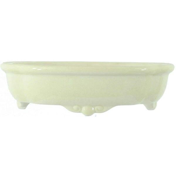 Bonsaischale (Glasiert, Weiß, Lotusförmig), handgemacht, in den Abmessungen: 33cm Länge, 27cm Breite, 9cm Höhe.