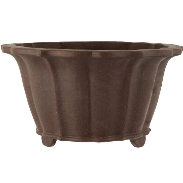 Bonsaischale (Unglasiert, Dunkelbraun, Rund), handgemacht, in den Abmessungen: 36cm Länge, 36cm Breite, 19.5cm Höhe.
