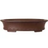 Bonsaischale (Unglasiert, Dunkelbraun, Lotusförmig), handgemacht, in den Abmessungen: 39cm Länge, 31cm Breite, 12cm Höhe.