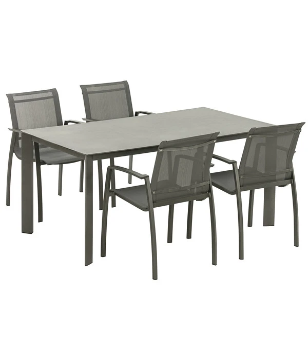 Gerne wird der Dehner Gartentisch Nancy mit Stühlen kombiniert, die ein Alugestell mit Textilene-Bespannung haben, wie der Stapelstuhl aus der gleichnamigen Gartenmöbelserie. Doch dank der Unterschubhöhe von 68 cm passen auch viele andere Stühle ausgezeichnet zu diesem formschönen Tisch.