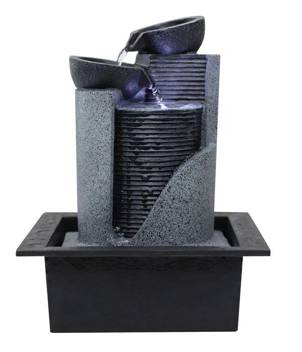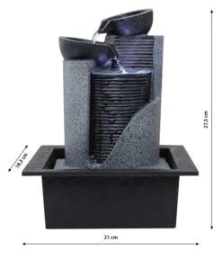 Der Zimmerbrunnen Kinay überzeugt nicht nur mit seinem Wasserspiel, sondern auch mit der positiven Auswirkung auf das Raumklima und mit der angenehmen LED-Beleuchtung. Dieses schöne Licht sorgt auch am Abend für eine entspannte und heimelige Atmosphäre. Die Verwendung von robustem Kunststein für die Herstellung des Brunnens verspricht außerdem Stabilität und eine lange Haltbarkeit. Warten Sie nicht länger auf diese Vorteile, sondern bestellen Sie den Dehner Polyresin-Zimmerbrunnen Kinay noch heute.