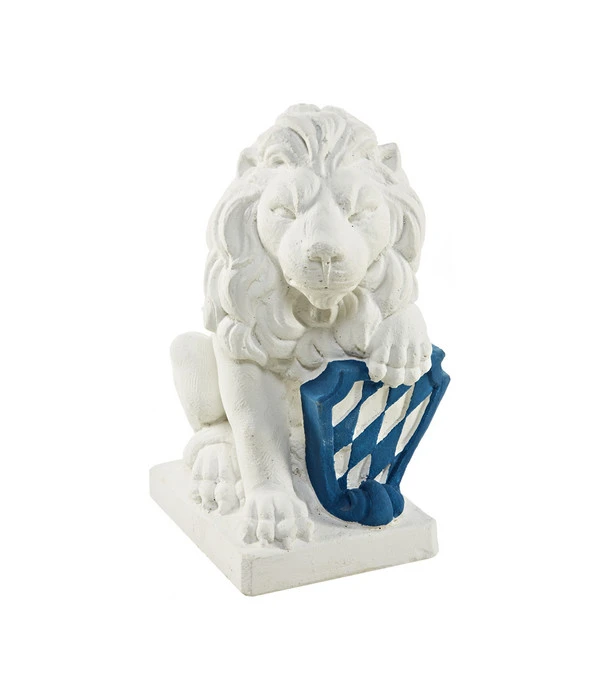 Der anmutige Löwe hält unverkennbar das bayerische Wappenzeichen vor sich und stellt als Portal-Figur einen wahrlich besonderen Blickfang für Ihre Gartengestaltung dar. Hergestellt wurde der Löwe aus massivem sowie frostbeständigem Kunststein, sodass die Figur ganzjährig für den Garten geeignet ist. Platzieren Sie das bayerische Wappentier beispielsweise auf einer Mauer oder in den Eingangsbereich der Terrasse.