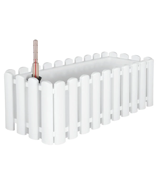 Sie wollen Ihren Balkon mit einem extravaganten Blumenkasten aufhübschen? Dann lassen Sie sich den rechteckigen Kunststoff-Kasten der Marke Geli nicht entgehen. Ob Geranien, Sonnenblumen oder Petunien, jede Pflanze sieht in diesem schicken Kasten wundervoll aus. Sein Lattenzaun-Design erinnert sofort an den angesagten Landhaus-Stil und verbreitet einen einzigartigen Charme, der Sie bei jedem Gang auf den Balkon erfreuen wird. Wenn Sie ihn bepflanzen und schon bald die farbenfrohe Blumenpracht darin bewundern, dann ist der zauberhafte Effekt dieses wunderschönen Pflanzaccessoires komplett. Um Ihnen die Pflege Ihrer Gewächse zu vereinfachen, wurde der Kasten noch mit einem hilfreichen Bewässerungssystem und einem praktischen Wasserstandsanzeiger ausgestattet.