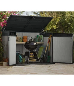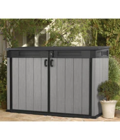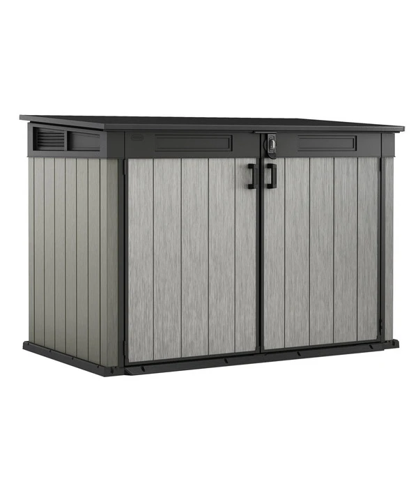Lieben Sie die Ordnung, wenn alles an seinem Platz ist und fein säuberlich aufgeräumt aussieht? Dann ist die Keter Universal-Aufbewahrungsbox Grande Store mit ihrem Fassungsvermögen von 2100 Litern das richtige Gartenaccessoire für Sie. Platzieren Sie die große Box in natürlicher Holz-Ästhetik in Ihrem Hof oder der Einfahrt und verstauen Sie darin, was gerade im Weg ist. Ihrer Fantasie sind dabei kaum Grenzen gesetzt. Dank Ihres enormen Fassungsvermögens nutzen Sie die Grande Store Aufbewahrungsbox, um Ihre Mülltonnen elegant verschwinden zu lassen oder als Unterstellmöglichkeit für Ihre Fahrräder. Auch Ihre Gartengeräte finden im Keter Aufbewahrungsschrank ein trockenes Zuhause.