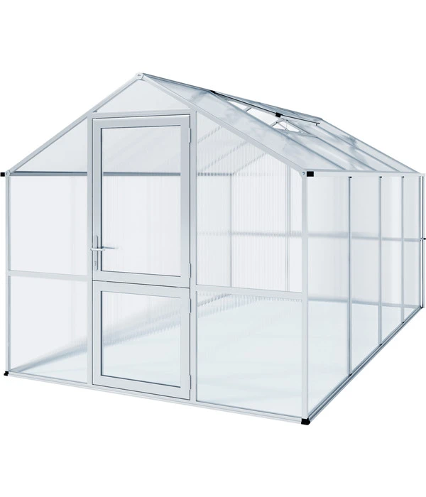 Blumen selbst vorziehen, aromatische Kräuter anbauen, genau wissen, dass die frisch geerntete Paprika tatsächlich bio pur ist – das sind nur einige der Gründe, warum Sie sich gerade für das KGT Gewächshaus Rose IV interessieren. Schließlich waren Sie schon in den vergangenen Jahren recht erfolgreich mit Ihrem Hochbeet oder einem kleinen ersten Gewächshaus. Und jetzt haben Sie Lust auf mehr! Mit dem Raum, den Ihnen dieses chwertige Markengewächshaus über seiner Grundfläche von 10 m² bietet, lässt sich einiges machen. Sie werden es genießen, bequem im Stehen an Ihren vielen Zöglingen zu arbeiten. Natürlich bietet es sich an, den Raum mit praktischen Zubehörteilen wie Gewächshaustischen oder Hängebords optimal zu organisieren und individuell an Ihre Bedürfnisse anzupassen. Und dann steht einer baldigen Ernte Ihrer eigenen Tomaten, Gurken und Paprikas nichts mehr im Wege. Bestimmt reizt Sie auch der Anbau empfindlicherer, wärmeliebender Pflanzen wie Aubergine, Papaya oder Melone. Gönnen Sie sich einfach ein KGT Gewächshaus Rose IV und dann probieren Sie alles aus!