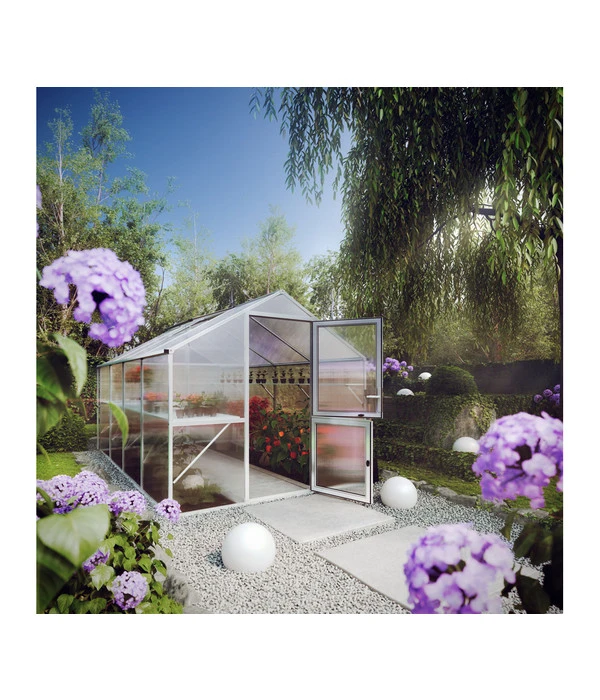 Korrosionsbeständige Aluminiumprofile, die so stabil sind, dass Ihr neues Gartenbauwerk Wind und Wetter standhalten kann und die so angenehm leicht sind, dass sie sich einfach zusammenbauen lassen; 10 mm starke Hohlkammerplatten mit ‚Longlife‘-UV-Schutz, die hochbruchfest, wärmeisolierend und lichtdurchlässig sind, aber gleichzeitig vor dem Brennglas-Effekt schützen – der Markenhersteller KGT verwendet aus Überzeugung nur hochwertige Materialien für das Gewächshaus Rose IV, damit Sie sich einfach nur auf Ihr Hobby konzentrieren können.
