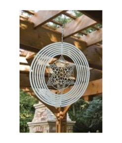 Das NATURE’S MELODY Windspiel Cosmo Mandala ist aus robustem und rostfreiem Edelstahl in präziser Stanztechnik gefertigt. Aufgrund dessen hält das Windspiel jeder noch so extremen Witterung mühelos stand. Mithilfe eines Hakens können Sie das Objekt ganz einfach aufhängen. Ein Drehband aus Edelstahl sorgt für eine optimale Leichtläufigkeit des Windspiels. Mit diesem Wohnaccessoire verleihen Sie Ihrem Zuhause eine ganz individuelle sowie mystische Note mit großer Symbolkraft. Bestellen Sie sich das Windspiel Cosmo Mandala gleich jetzt und lassen Sie den magischen Anblick auf sich wirken!