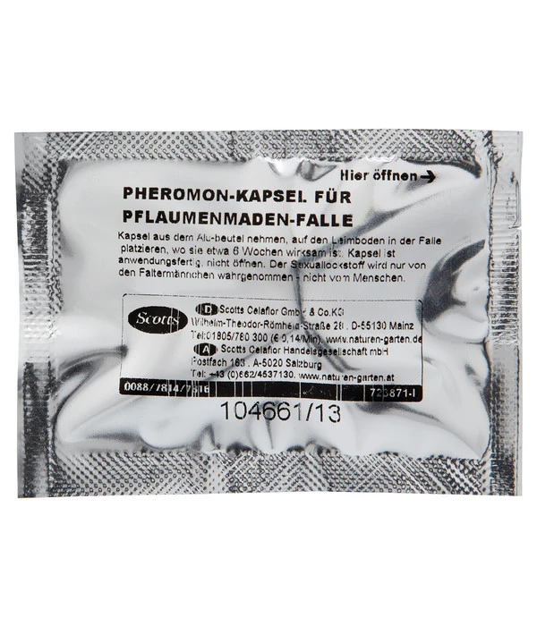 Saftig süße Pflaumen aus dem eigenen Garten – eine absolute Leckerei in den Spätsommermonaten und im Herbst. Die fruchtige Ernte leidet häufig unter dem Befall von Pflaumenwicklern. Um diese Schädlinge am Befall der Früchte zu hindern, bietet die Firma die praktische Naturen® Pflaumenmaden-Falle an. Die biotechnische Falle dient zur Kontrolle des Befalls und zum Abfangen der Pflaumenwicklermännchen. Die Männchen des Pflaumenwicklers werden durch den Sexuallockstoff in die Falle gelockt und bleiben auf dem Leim kleben. Die Weibchen bleiben dadurch unbefruchtet und legen keine Eier, aus denen die gefräßigen Maden des Pflaumenwicklers schlüpfen können. Auf Nutzinsekten und andere Falterarten hat die spezielle Pheromon-Formulierung sowie das Grün der Falle keine Lockwirkung.