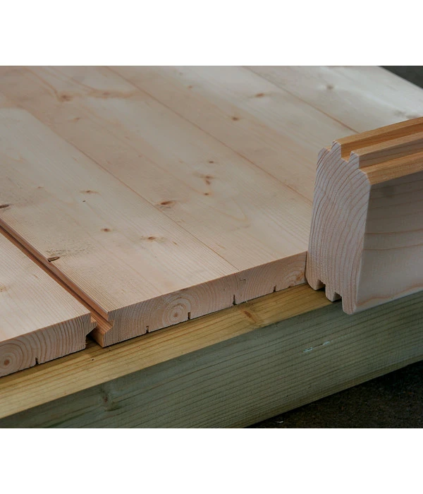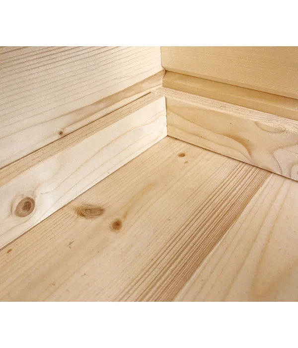 Das Wolff Finnhaus Gartenhaus Katrin 44-C wird in klassischer Blockbohlenbauweise aus Nordischer Fichte errichtet. Die Wandbohlen sind 44 cm dick und für eine einfache Montage passgenau gesägt und genutet. Des Weiteren wird durch einen speziellen Eckversatz eine besonders wind- und regendichte Verbindung gewährleistet. Auch das Dach ist sehr leicht zu montieren und bietet eine hohe Stabilität. Hinweis: Das Haus wird ohne Dacheindeckung geliefert, deshalb Sie am besten die Schindeln zur endgültigen Dacheindeckung gleich mitbestellen. Der Massivholzboden ist 18 mm stark und wird inkl. Randabdeckleisten und Unterkonstruktion geliefert.