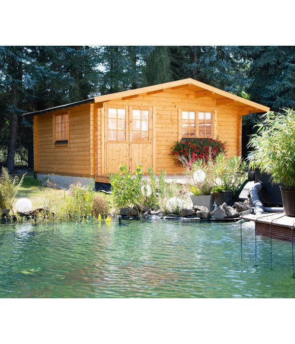 Jeder, der einmal ein reines Holzhaus wie das Wolff Finnhaus Gartenhaus Nordkap 70-D betreten hat, wird die einzigartige Atmosphäre im Inneren nicht vergessen, die einen sofort entspannen und den Alltagsstress vergessen lässt. Dank der zwei Fenster auf zwei Hausseiten und den Glaselementen in der doppelflügeligen Tür fällt außerdem ausreichend Licht ins Innere und erlaubt Ihnen zugleich einen Blick hinaus in Ihren Garten. Alle Glaselemente bestehen aus Isolierglas, die Fenster sind mit Dreh-Kipp-Verschlüssen ausgestattet, so dass Sie das Haus gut lüften können. Für die Tür wurde hochwertiges Leimholz verwendet, das Ihnen beste Funktionalität auch in vielen Jahren noch garantiert. Alu-Fensterbänke und eine Edelstahlschwelle an der Tür machen die Ausstattung des Wolff Finnhaus Gartenhaus Nordkap 70-D perfekt.